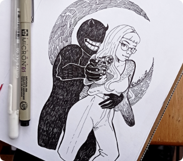 Desde criança, o desejo de transformar a paixão pelo desenho e pela pintura em caminho de vida a levou a experimentar diferentes técnicas, suportes e materiais. Hoje, suas criações ganham forma principalmente com nanquim, lápis de cor e tinta acrílica, mantendo viva a curiosidade e a vontade de explorar o mundo através da arte.